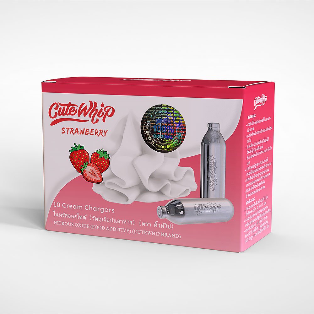 CuteWhip 8g Strawberry Culinary Gas Cartridges Food Grade Stainless Steel Leakproof Kitchen-Safe Cream Chargers Nitrous Oxide N2O Thailand / USA